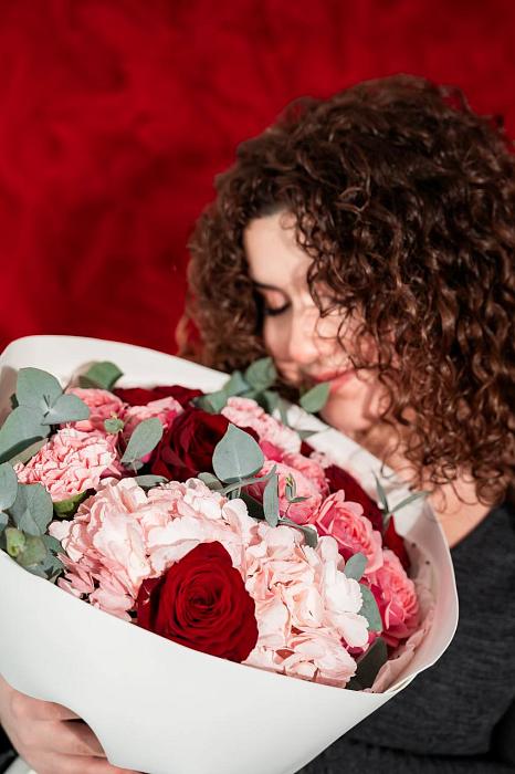 Гвоздика, Гортензия, Пионовидные розы, Эвкалипт