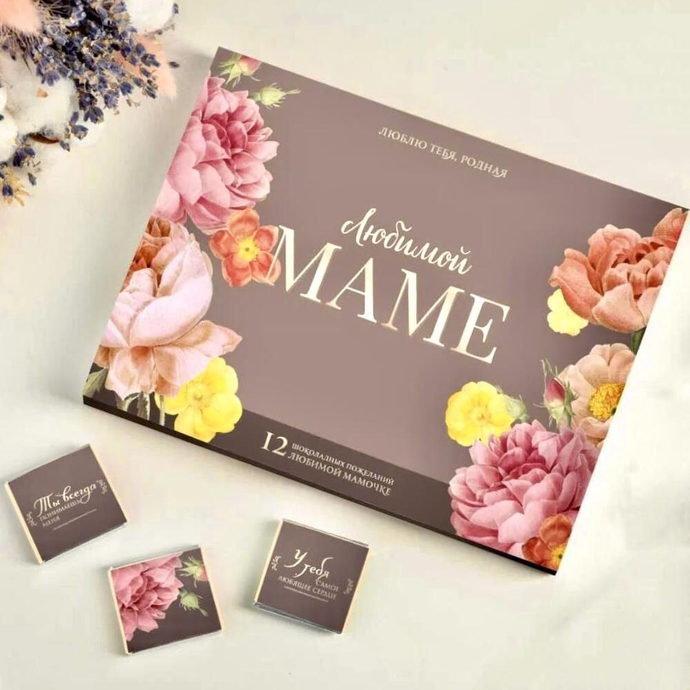 Набор 12 шоколадок "Любимой маме (темный фон)"