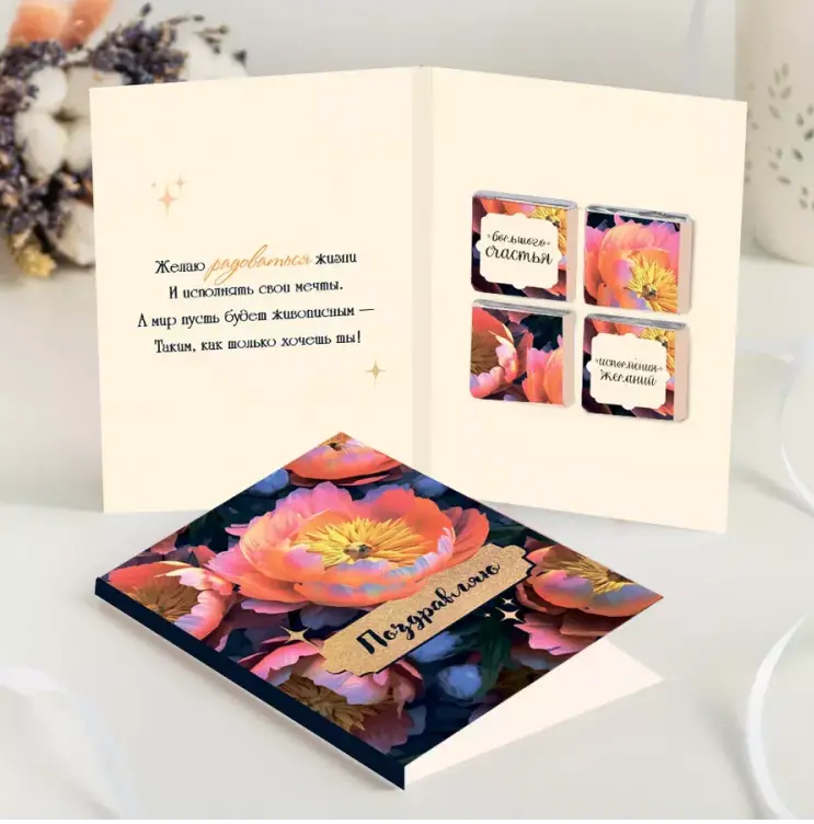 Открытка 4 шоколадки "Поздравляю"