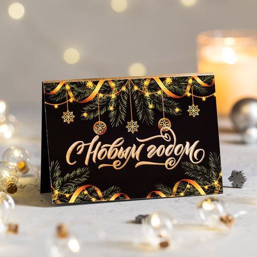 Открытка 4 шоколадки "С новым годом (темный фон)"